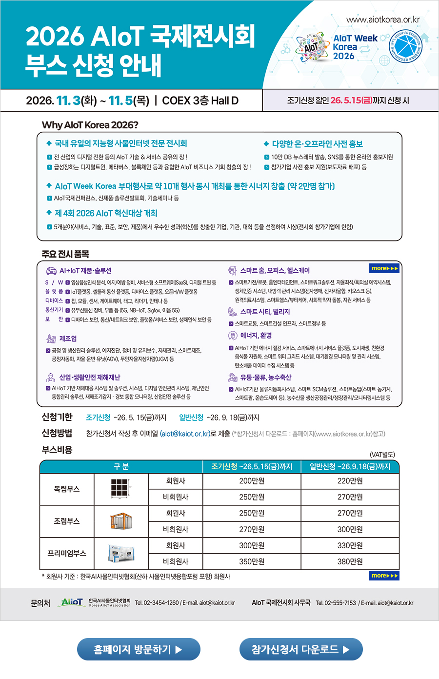 2026 AIoT 국제전시회 부스 신청 안내 (조기신청 할인 ~ 5. 15(금))